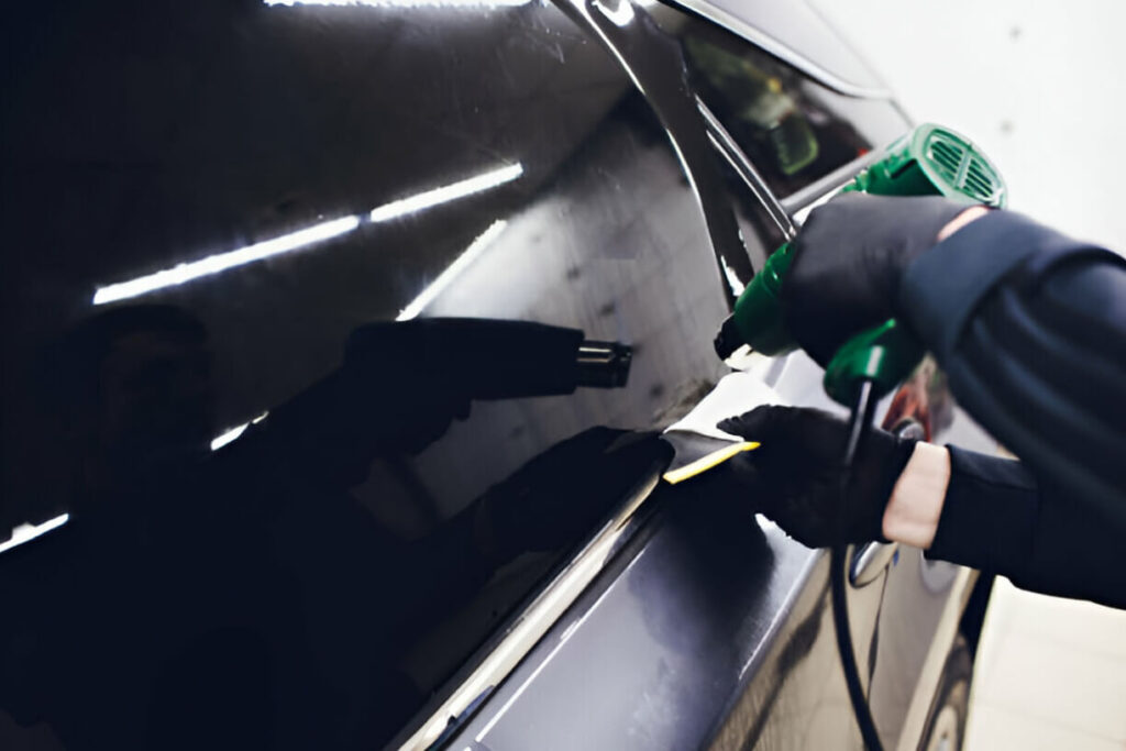 Porque la película está reteniendo el calor y no permite que pase al interior del vehículo.